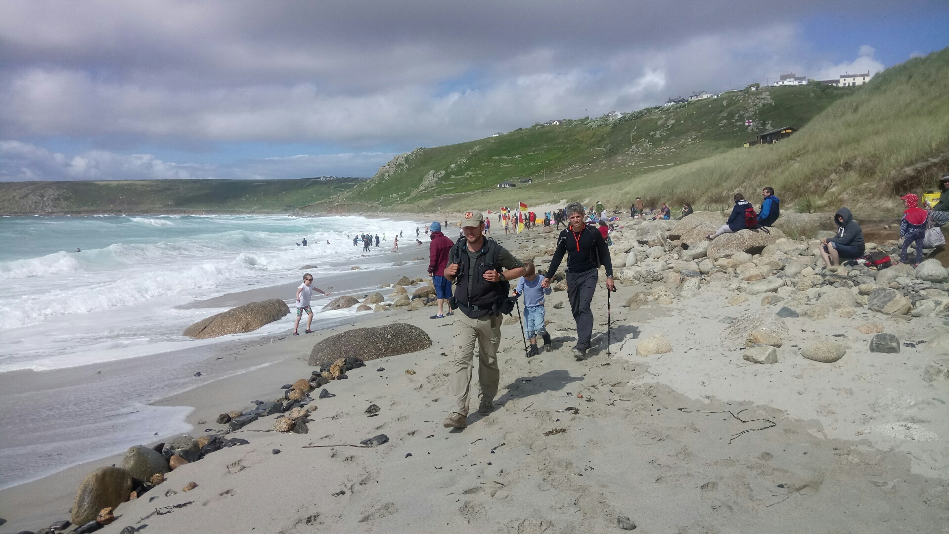 STILL0ENGLAND/92 – ST IVES TO LAND’S END ON THE S W COAST PATH – WALKING 28 MILES WITH BIG ANDY INCLUDING 7 MILES WITH DONALD AND STAN. NEW TOTAL 3,367 MILES IN 265 DAYS. WE HAVE A WINNER! BUT WHO GOT TO LAND’S END FIRST?