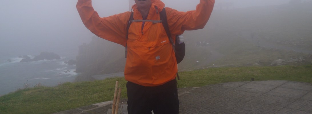 This is the last time I shall be writing to you to tell you all about my walk around the coastline of England. That is because last Tuesday, 25th July, I finished walking from The Lizard to Land’s End along the South West Coast Path. I first started my walk in November 2013, so it has taken well under four years in total. Big Andy was with me taking care of all procedures and navigation necessary to keep me on the straight and narrow, and to allow me to savour my last days walking, without getting lost. Considering the mist that descended on us in the latter stages that was a considerable feat he performed. And very many thanks to everyone else who helped. You were wonderful.